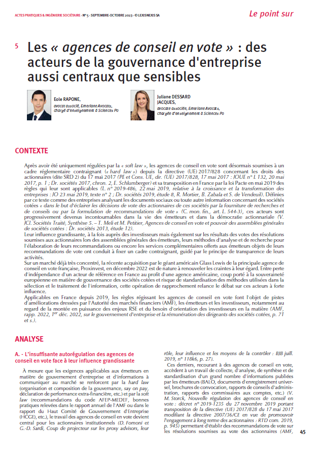 Retrouvez notre article publié dans la revue Actes pratiques et ingénierie sociétaire (LexisNexis - Juriste d'entreprise).