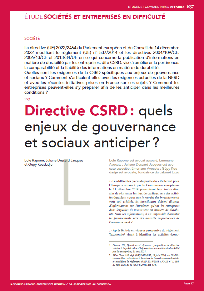 Retrouvez dans la Semaine Juridique Entreprises et Affaires notre étude co-écrit avec Gépy Koudadje du cabinet Exso.
