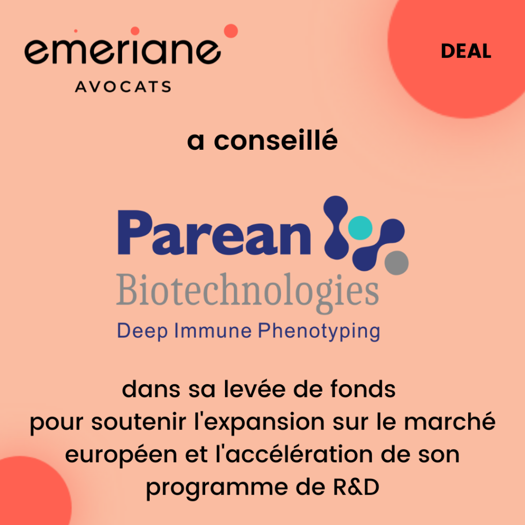 - Emeriane Avocats conseille Parean Biotechnologies dans sa levée de fonds