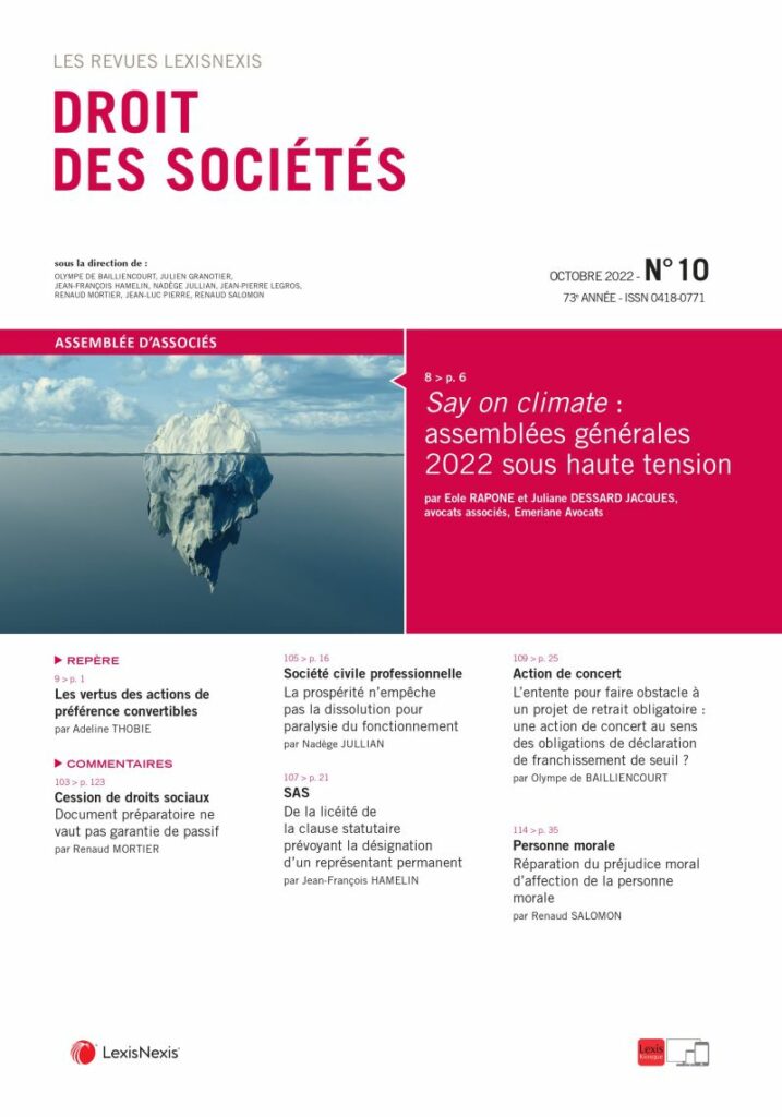 Retrouvez notre premier bilan dans la revue Droit des sociétés de LexisNexis LexisNexis - Juriste d'entreprise (octobre 2022). L'étude analyse notamment l’étude des implications juridiques pour les émetteurs : lien.