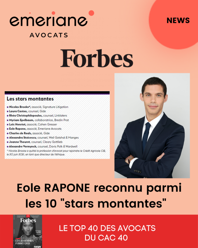 - Forbes publie son Top 40 des avocats du CAC 40 : Eole RAPONE reconnu parmi le...