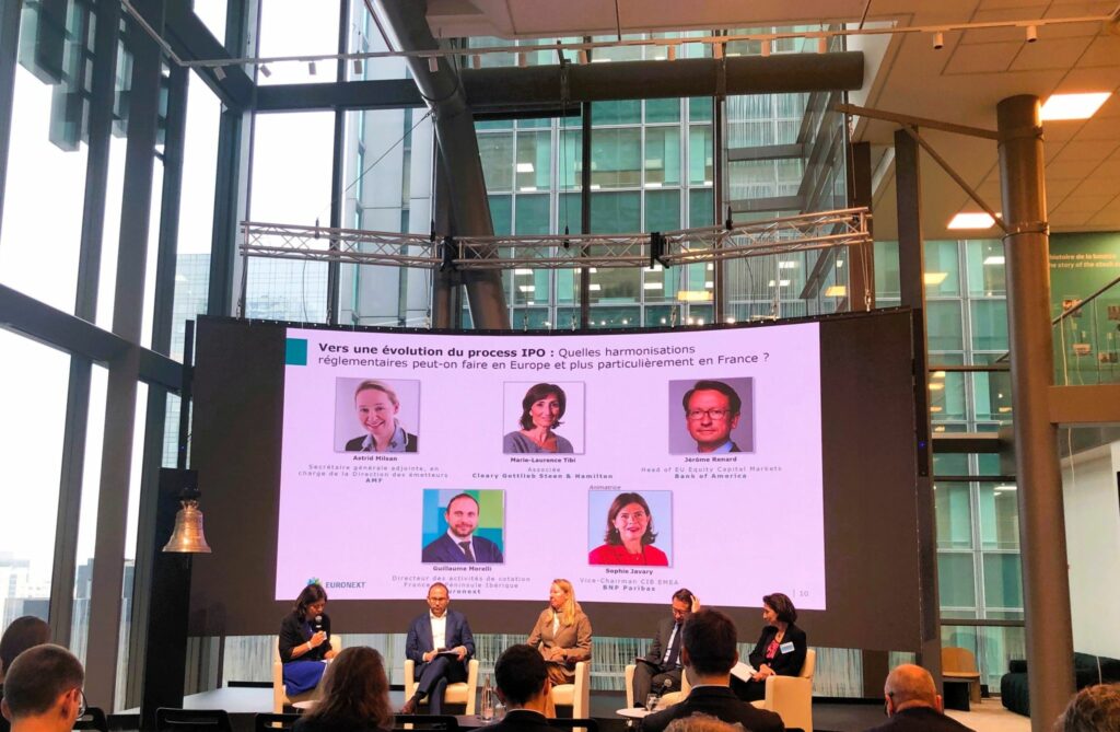 Intervenants : Sophie Javary (BNP Paribas), Astrid Milsan (AMF), Marie-Laurence Tibi (Cleary Gottlieb Steen & Hamilton LLP), Jérôme Renard (Bank of America) et Guillaume Morelli, CIIA (Euronext)