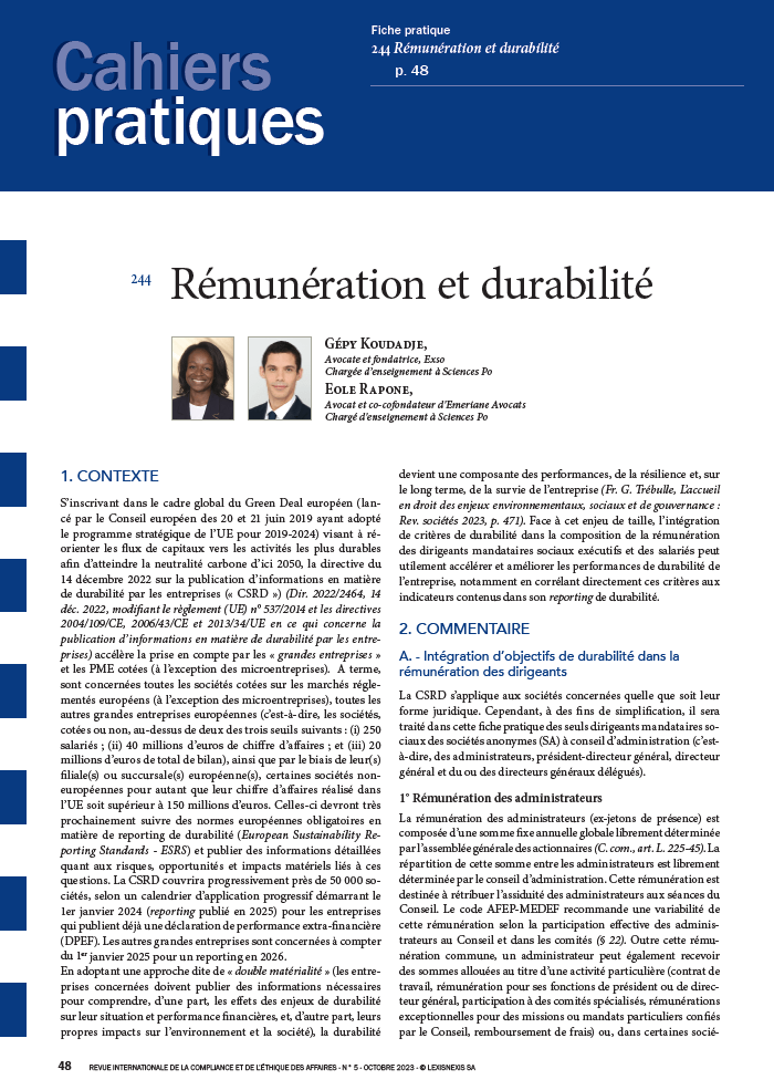Retrouvez nos regards croisés en droit des sociétés et droit social concernant l’intégration des critères de durabilité dans la rémunération.