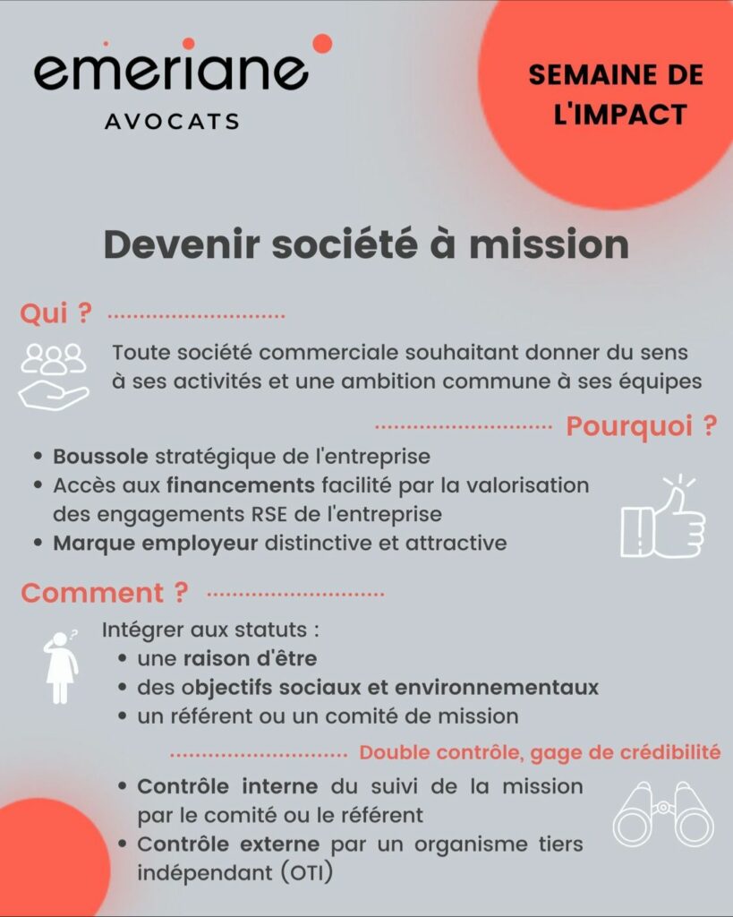 Cette qualité requiert de modifier ses statuts notamment pour inclure une raison d’être (formule concise reprenant l’ambition collective de l’entreprise et résultant d'une réflexion partagée avec ses parties prenantes) ainsi que des objectifs sociaux et environnementaux que l’entreprise se donne pour mission de poursuivre.